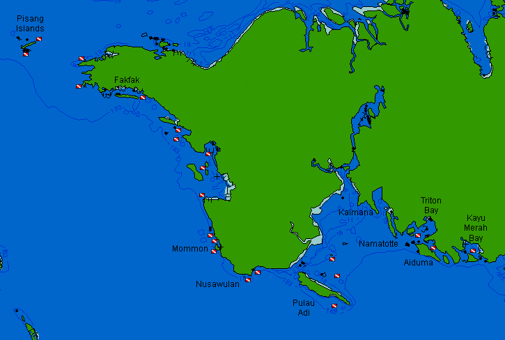 Beginnt man seine Tauchsafari zur Triton Bucht in Sorong, ist in aller Regel die erste Station auf dem Weg nach Süden Misool. Dort kann man entweder die Riffe im Südosten betauchen oder aber - was ich auf jeden Fall empfehlen würde - man macht den Umweg über die Westseite und besucht die Blue Water Mangroves, wo man sich allerdings vor den Salzwasserkrokodilen in acht nehmen muss.